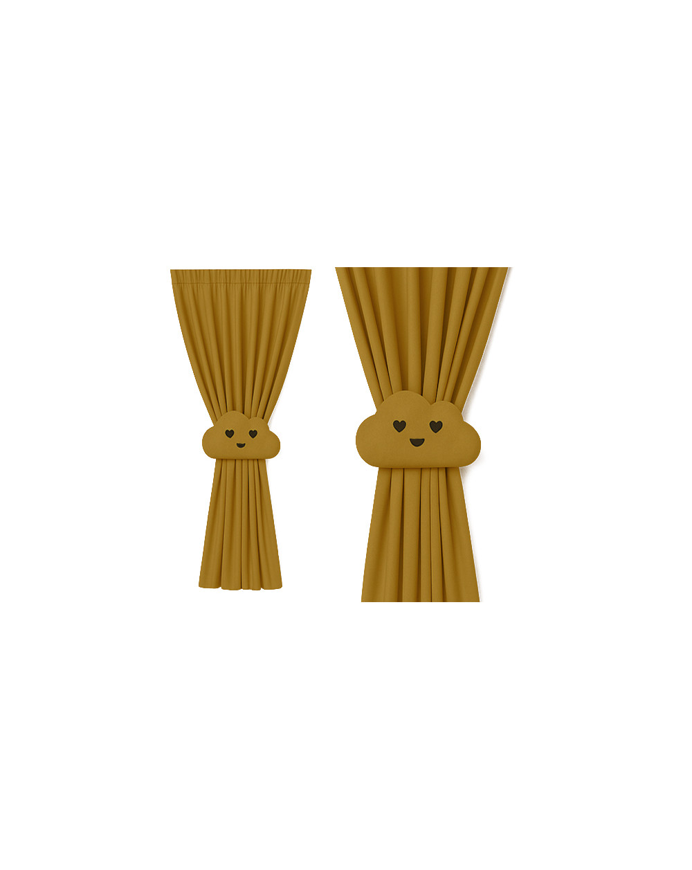 Zestaw - zasłona + zapięcie/ozdoba chmurka w kolorze musztardowym