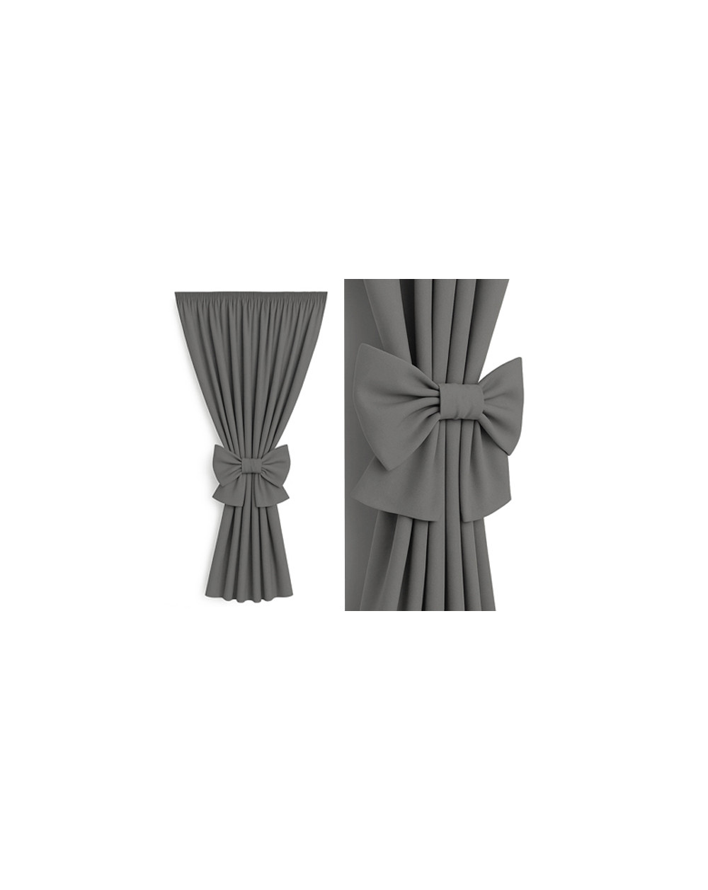 Zestaw - zasłona + zapięcie/ozdoba kokarda w kolorze szary/grafit