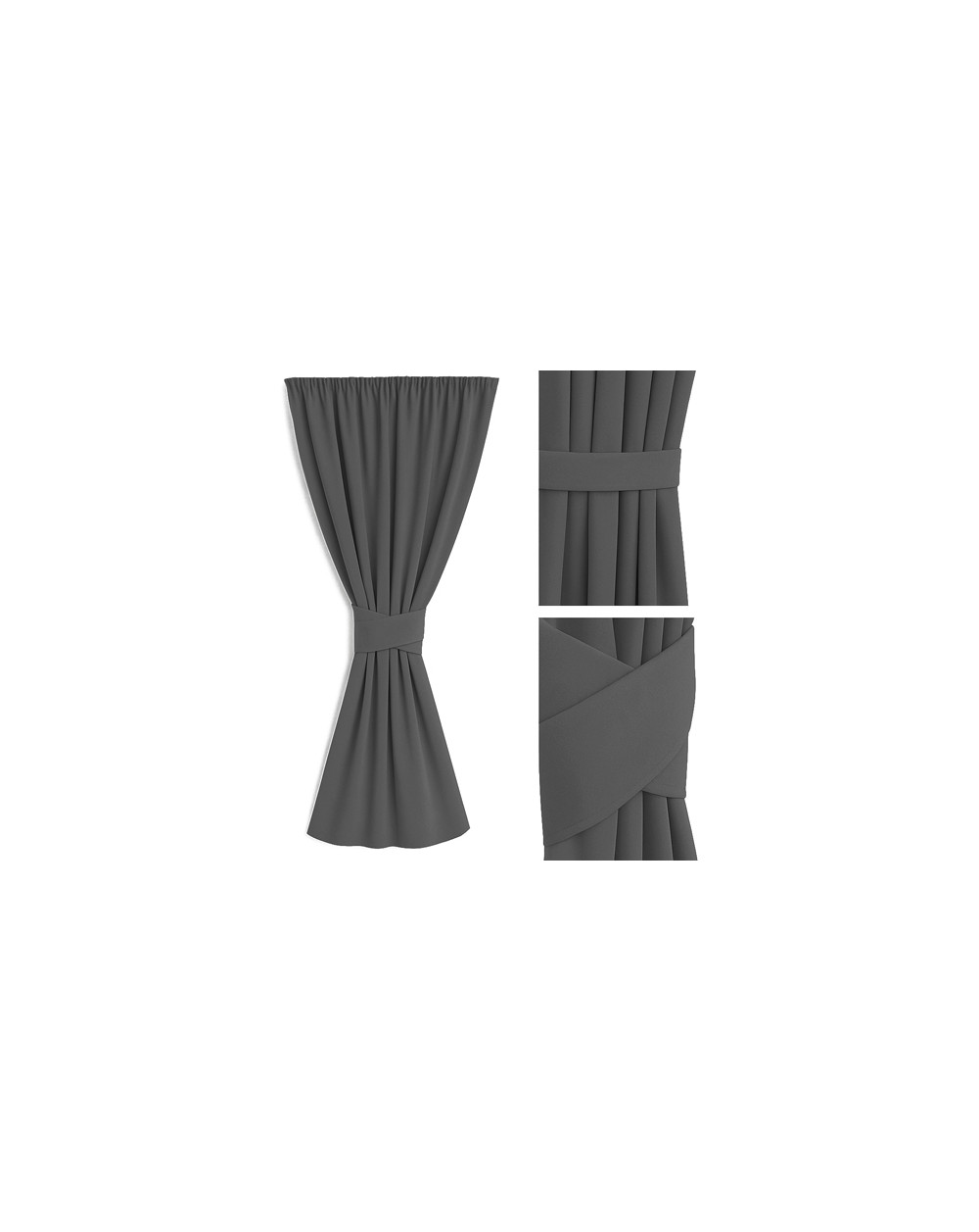 Zestaw - zasłona + zapięcie/ozdoba pasek w kolorze szary/grafit