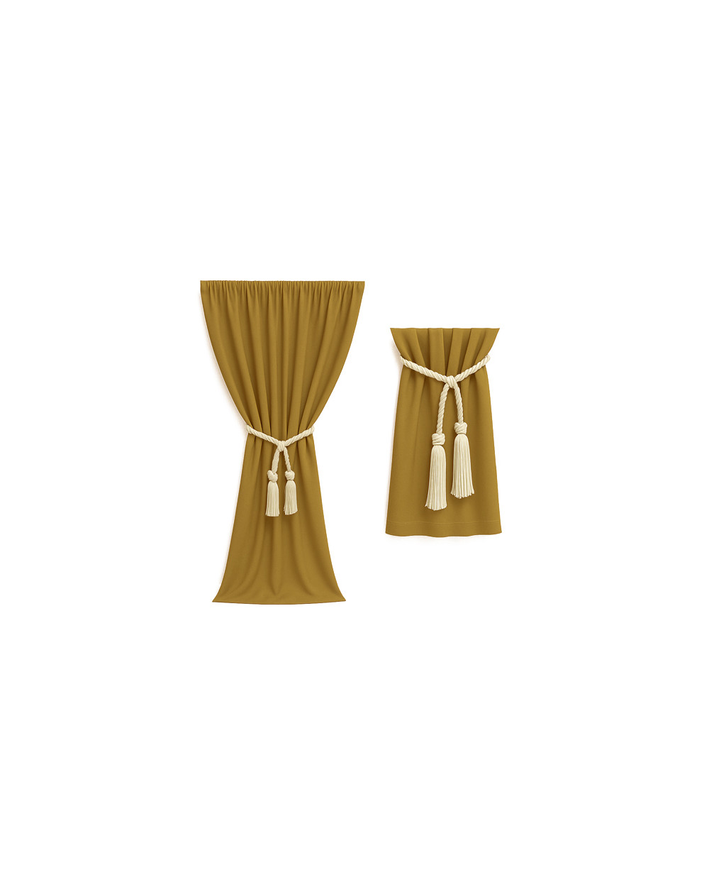 Zestaw - zasłona + zapięcie/ozdoba sznur w kolorze musztardowym