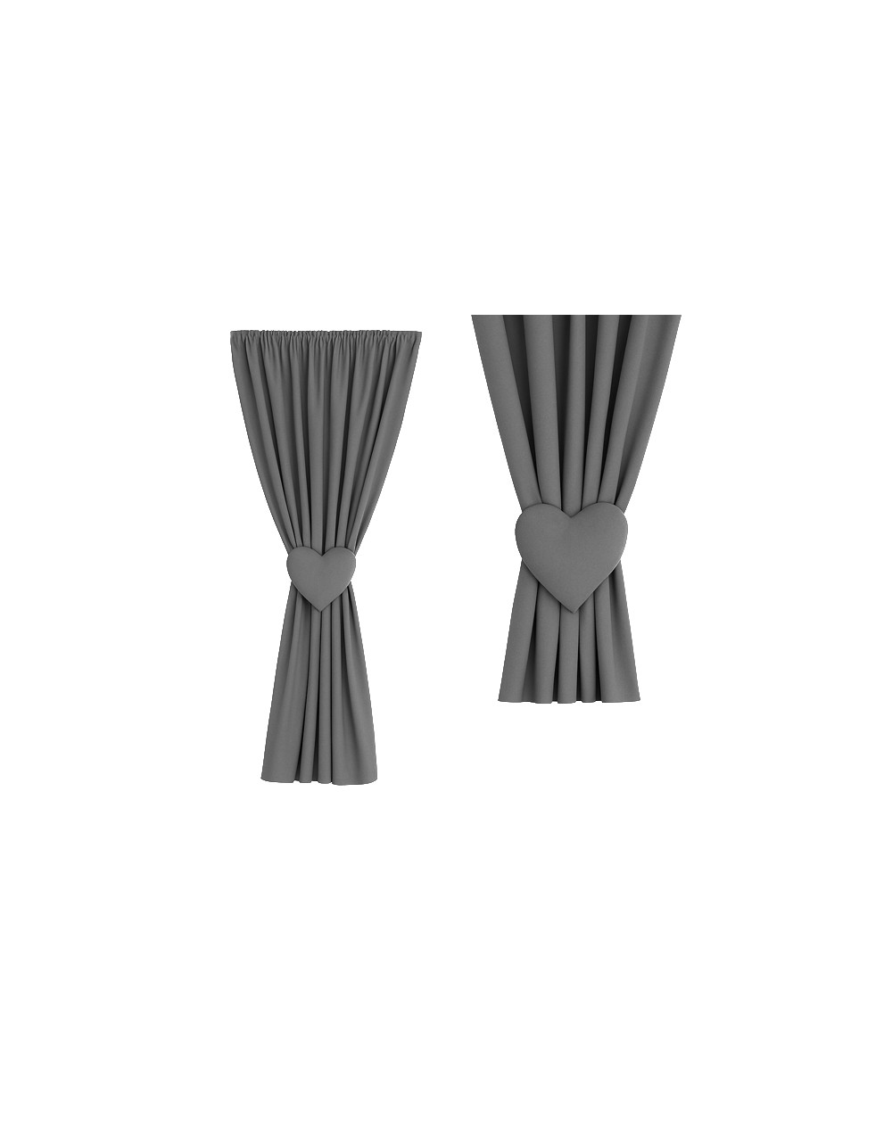 Zestaw - zasłona + zapięcie/ozdoba serce w kolorze szary/grafit