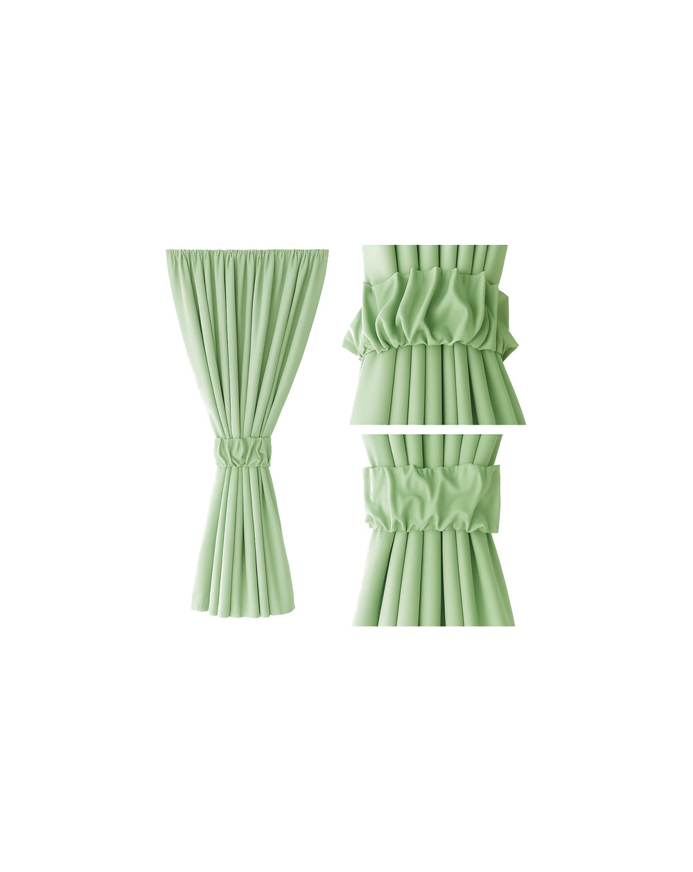 Zestaw - zasłona + zapięcie/ozdoba opaska z marszczeniem w kolorze zielony jasny