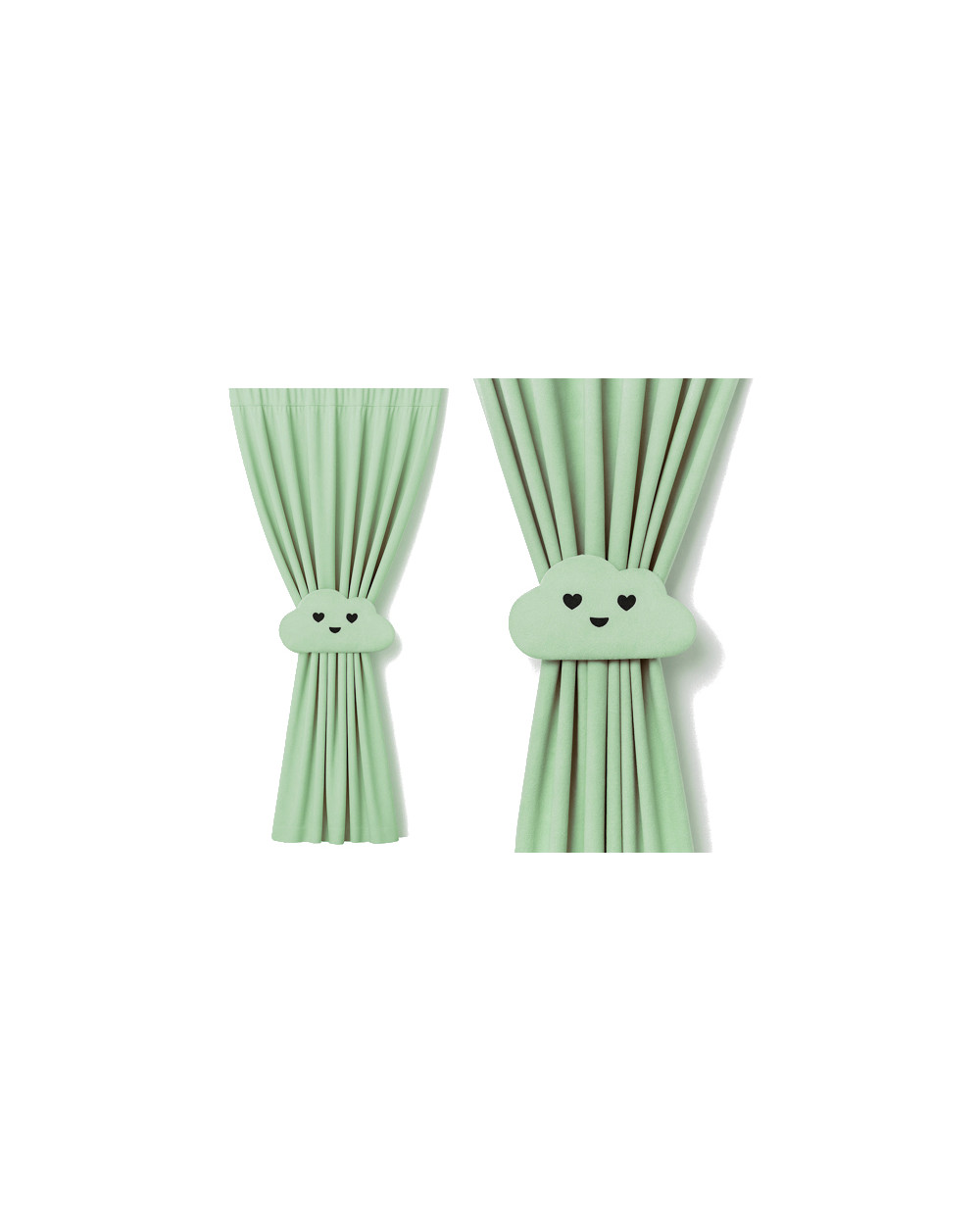 Zestaw - zasłona + zapięcie/ozdoba chmurka w kolorze jasny zielony