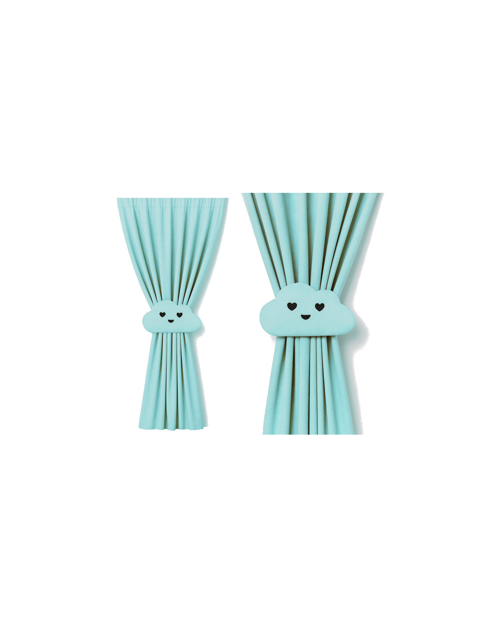 Zestaw - zasłona + zapięcie/ozdoba chmurka w kolorze niebieskim