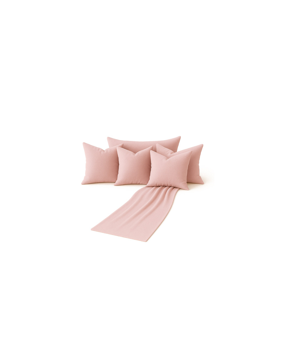 Zestaw pudrowy róż 6w1 - narzuta + poduszki