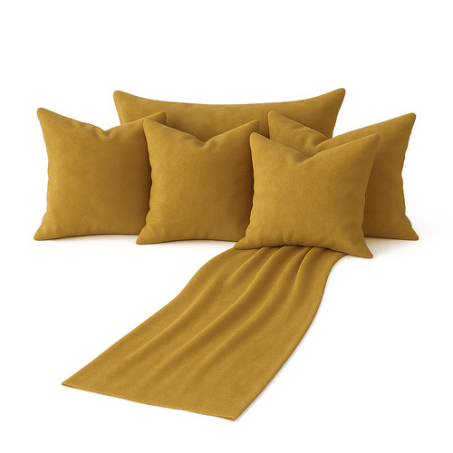 Zestaw musztardowy 6w1 - narzuta + poduszki